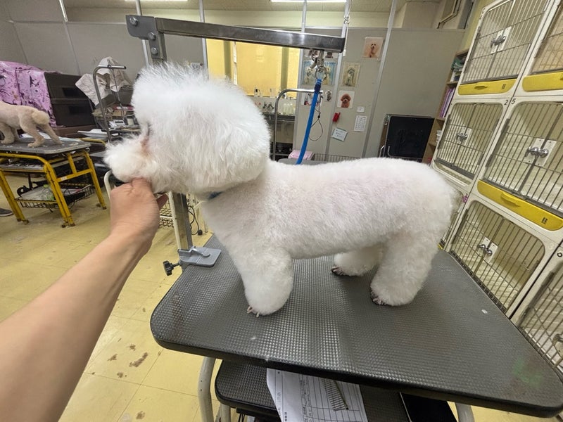 ピーチちゃん🐶 今日は、ビションフリーゼちゃんの実習でした! 13ミリサマー、足バリかぶせ、お顔ビション 長時間でカット中座り込んでましたが、最後まで頑張ってくれました🐶🐾 無料説明会のご案内 受講日時:完全予約制です。 受講料金:無料 お申し込み方法:下記ボタンより学校説明会予約ページへお進み頂きお申し込み下さい。 < 前の記事へ お知らせ一覧へ トリマーのたまごブログ一覧へ トリマーの学校ブログ一覧へ
